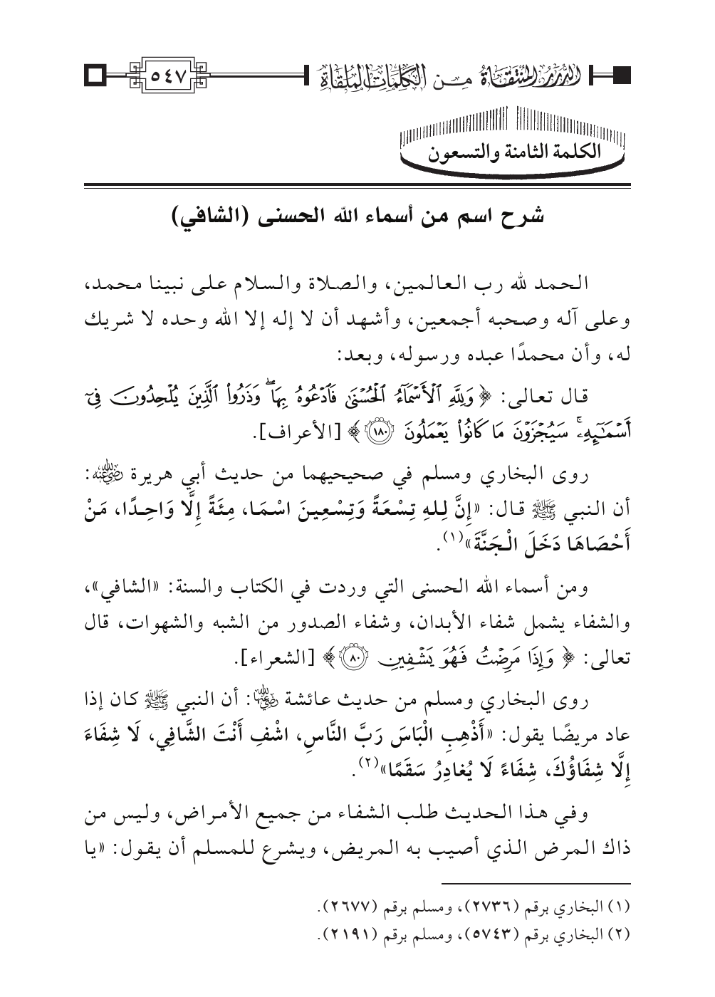 الكلمة الثامنة والتسعون: شرح اسم من أسماء الله الحسنى (الشافي)