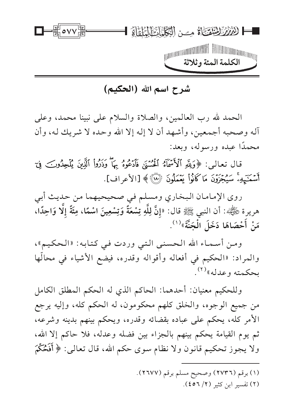 الكلمة المئة وثلاثة: شرح اسم الله (الحكيم)