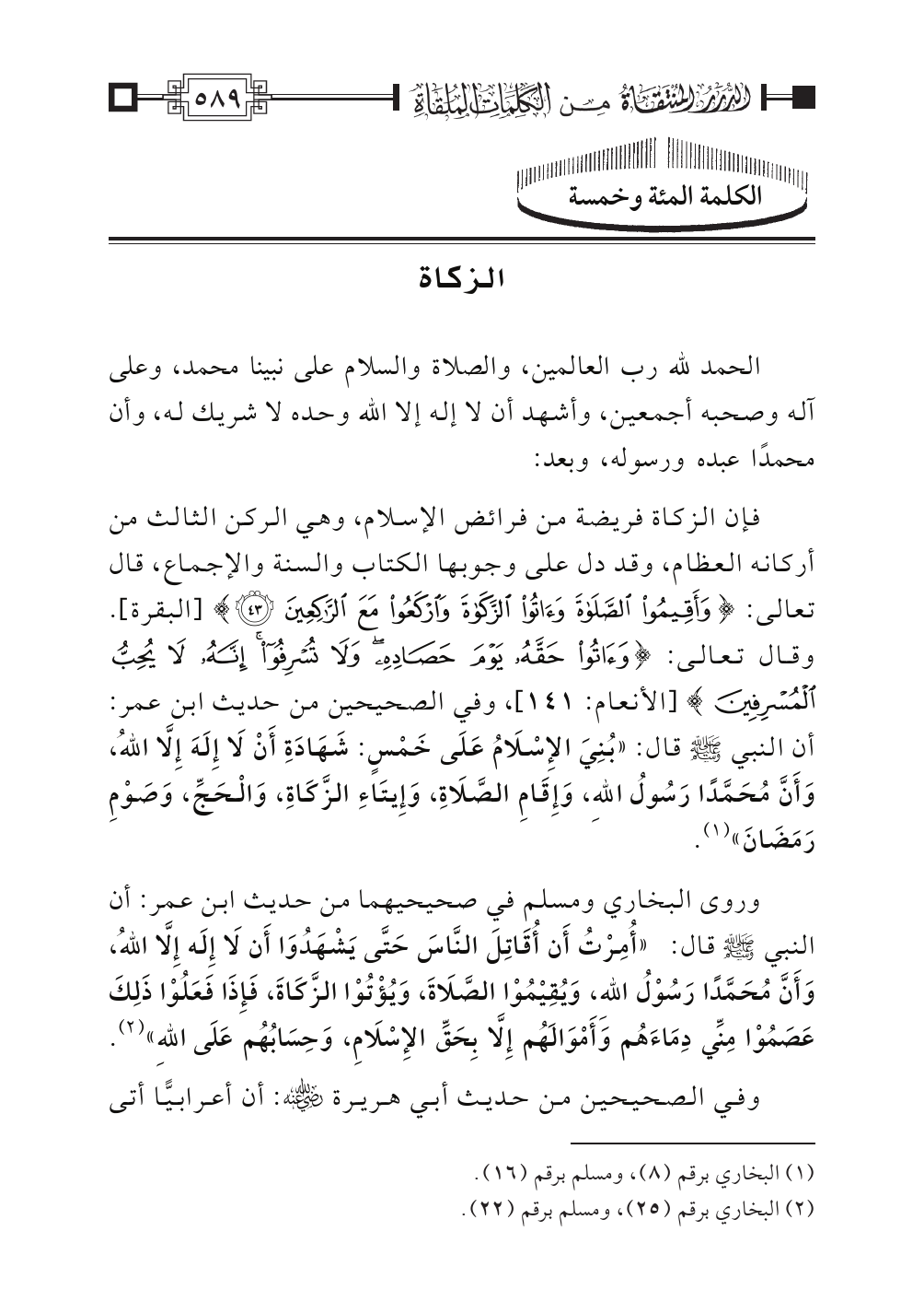 الكلمة المئة وخمسة: الزكاة