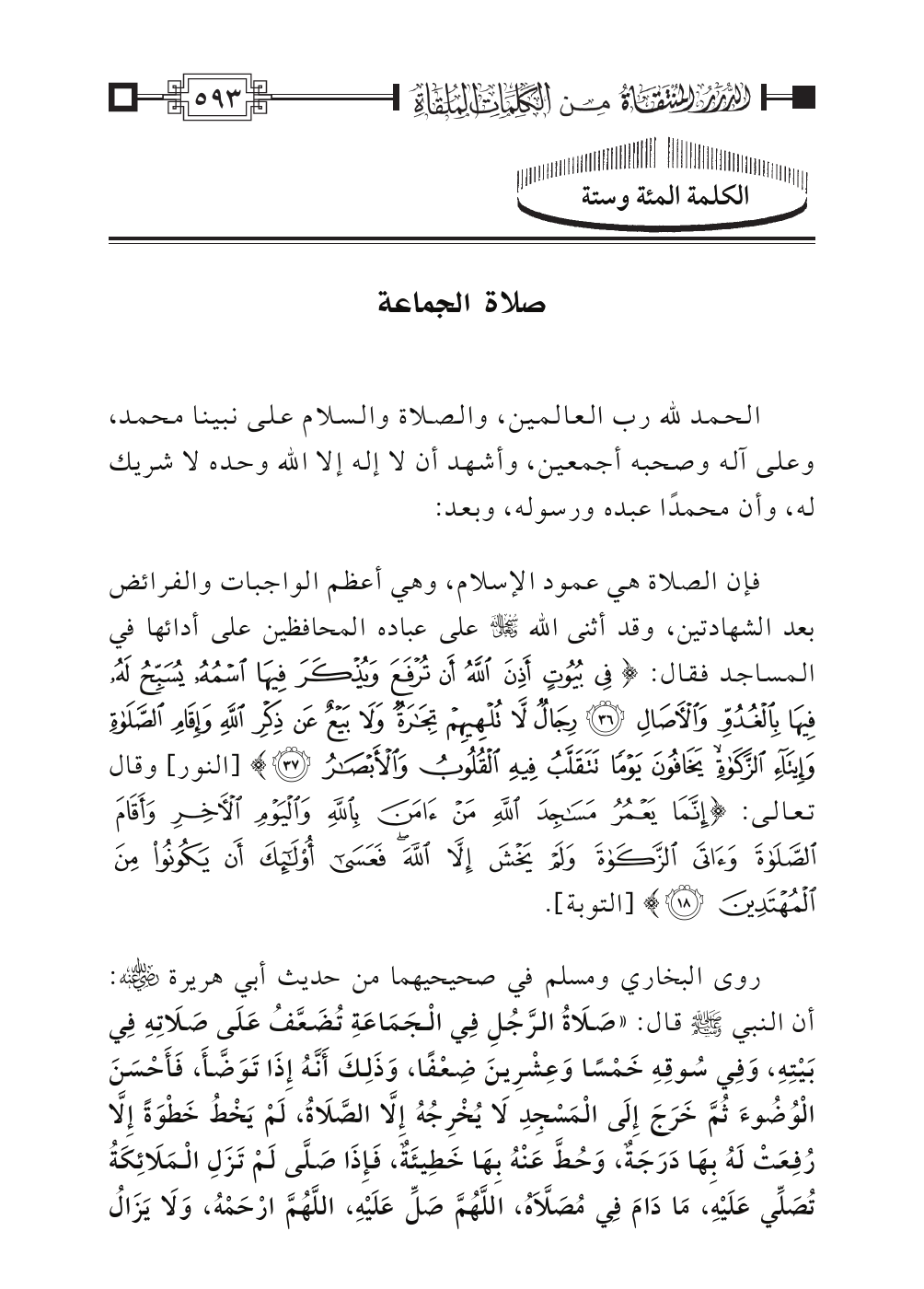 الكلمة المئة وستة: صلاة الجماعة