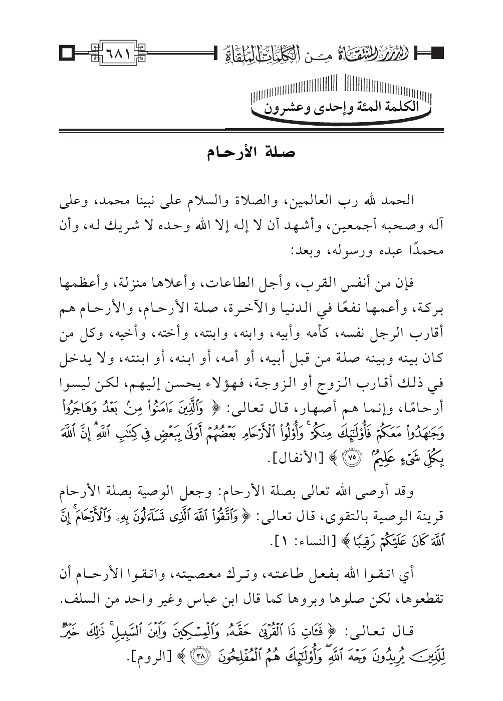الكلمة المئة وإحدى وعشرون: صلة الأرحام