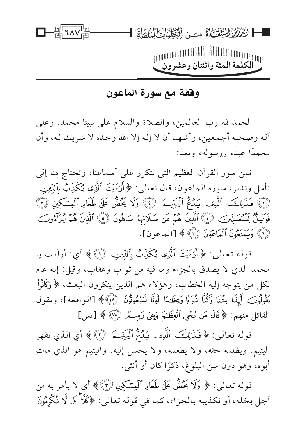 الكلمة المئة واثنتان وعشرون: وقفة مع سورة الماعون