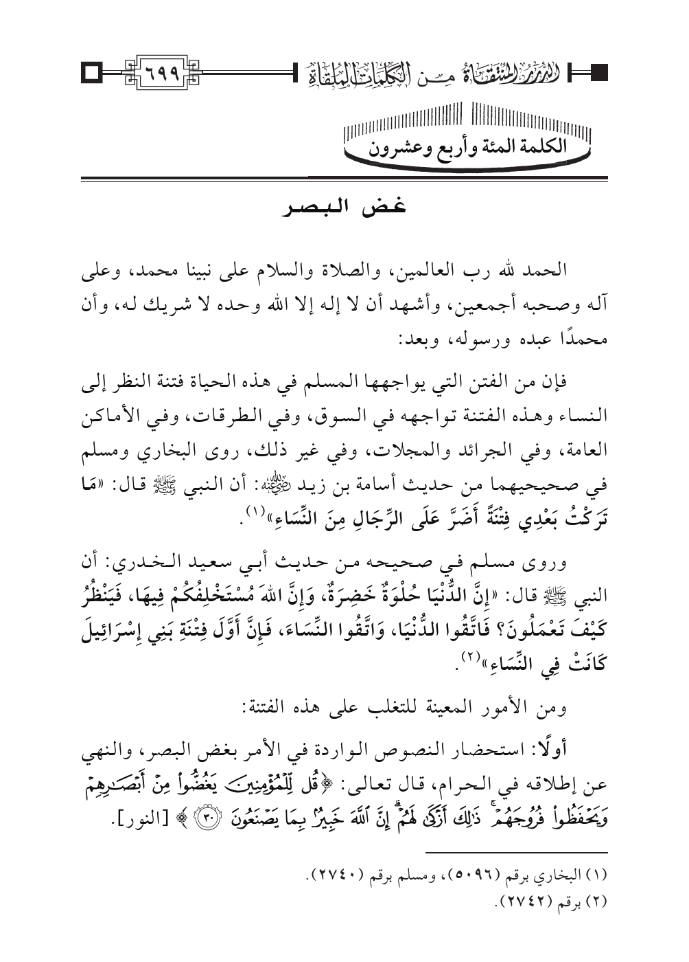 الكلمة المئة وأربع وعشرون: غض البصر