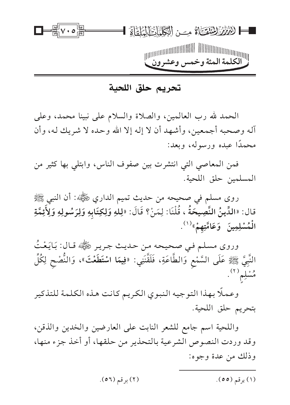 الكلمة المئة وخمس وعشرون: تحريم حلق اللحية