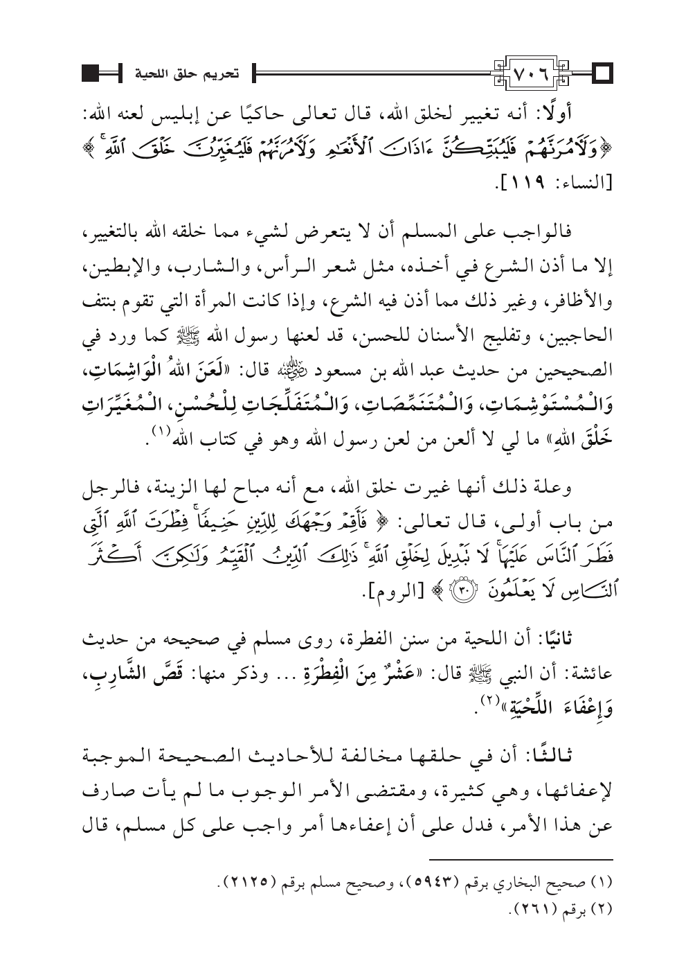 ثالثًا: أن في حلقها مخالفة للأحاديث الصحيحة الموجبة لإعفائها، وهي كثيرة، ومقتضى الأمر الوجوب ما لم يأت صارف عن هذا الأمر، فدل على أن إعفاءها أمر واجب على كل مسلم، قال