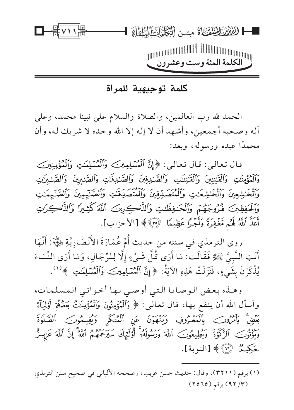 الكلمة المئة وست وعشرون: كلمة توجيهية للمرأة