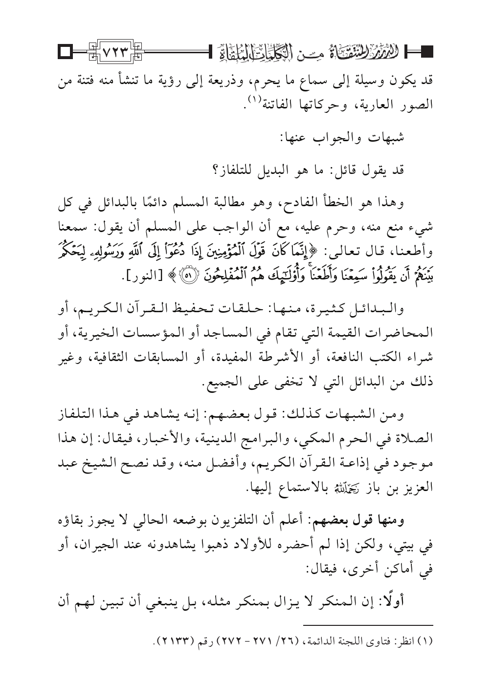 (¬١) انظر: فتاوى اللجنة الدائمة (٢٦/ ٢٧١ - ٢٧٢) برقم (٢١٣٣).