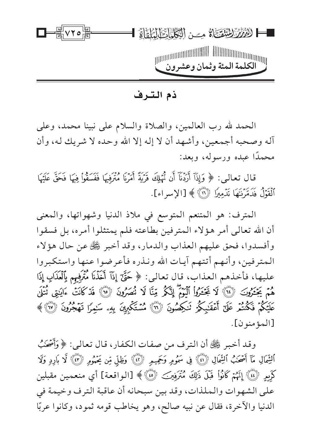 الكلمة المئة وثمان وعشرون: ذم الترف