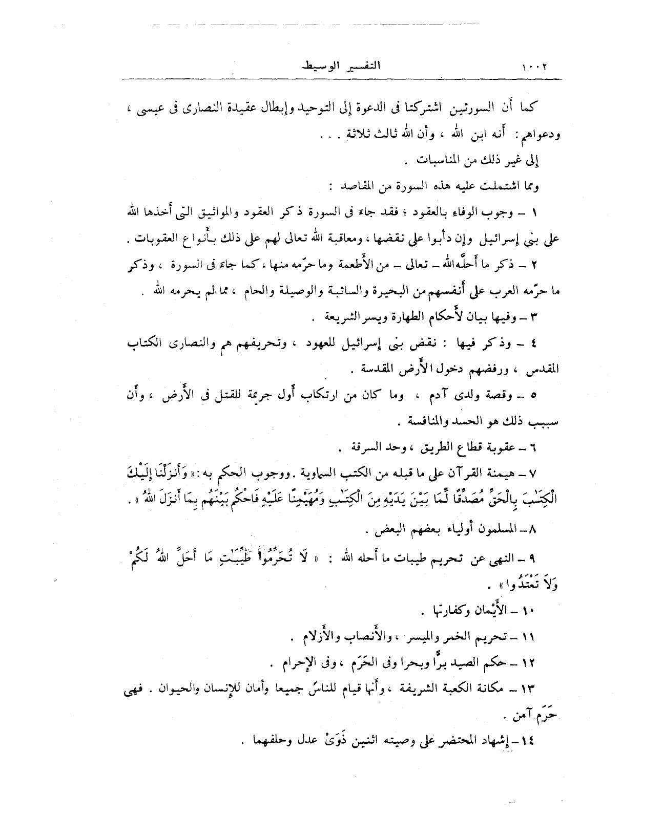 9 - النهي عن تحريم طيبات ما أَحله الله: (لَا تُحَرِّمُوا طَيِّبَاتِ مَا أَحَلَّ اللهُ لَكُمْ وَلَا تَعْتَدُوا).