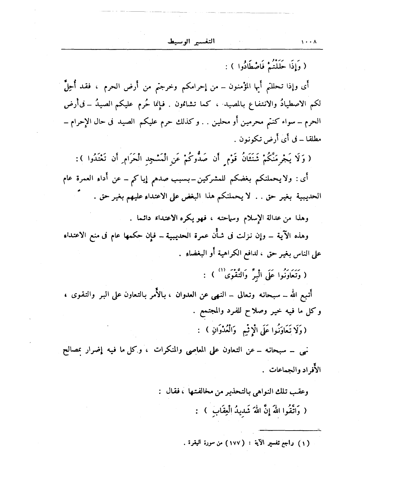 أَتبع الله - سبحانه وتعالى - النهي عن العدوان، بالأَمر بالتعاون على البر والتقوى، وكل ما فيه خير وصلاح للفرد والمجتمع.