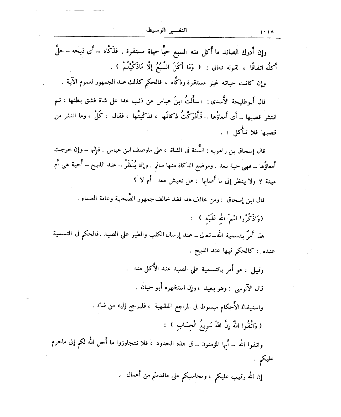 وقيل: هو أمر بالتسمية على الصيد عند الأكل منه.