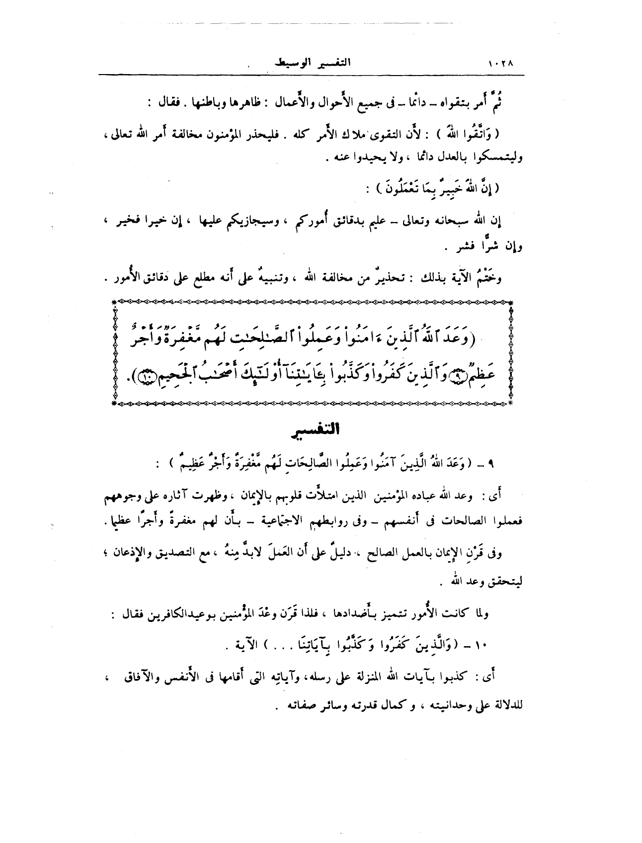 9 - {وَعَدَ اللَّهُ الَّذِينَ آمَنُوا وَعَمِلُوا الصَّالِحَاتِ لَهُمْ مَغْفِرَةٌ وَأَجْرٌ عَظِيمٌ}: