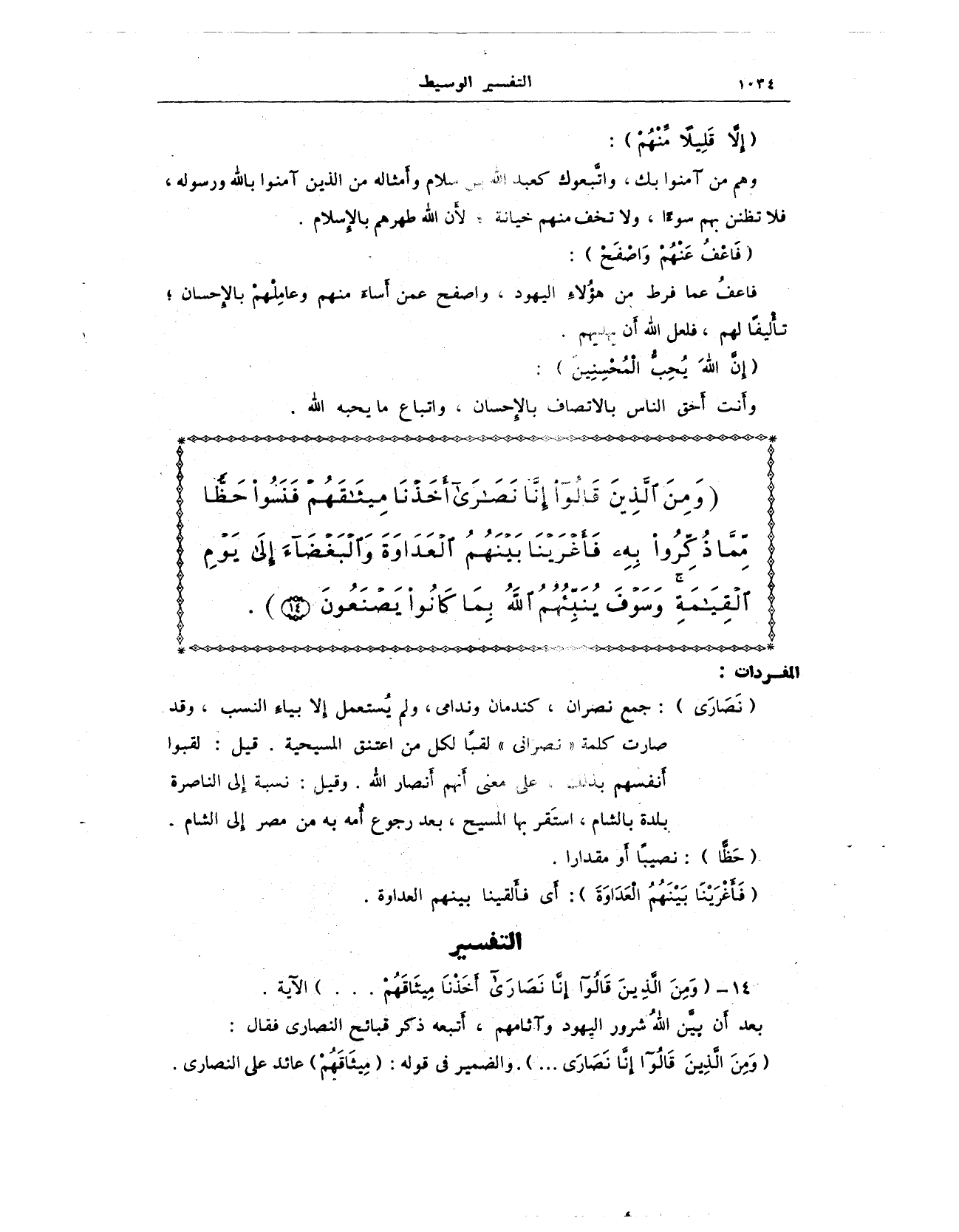 14 - {وَمِنَ الَّذِينَ قَالُوا إِنَّا نَصَارَى أَخَذْنَا مِيثَاقَهُمْ ... } الآية.