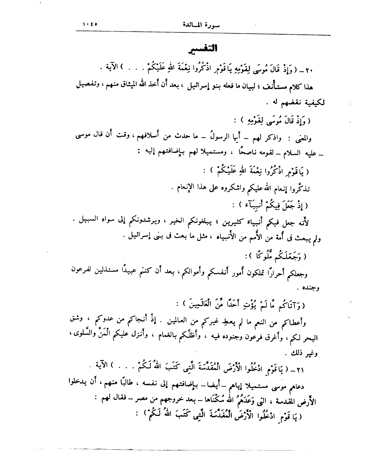 20 - {وَإِذْ قَالَ مُوسَى لِقَوْمِهِ يَا قَوْمِ اذْكُرُوا نِعْمَةَ اللَّهِ عَلَيْكُمْ ... } الآية.