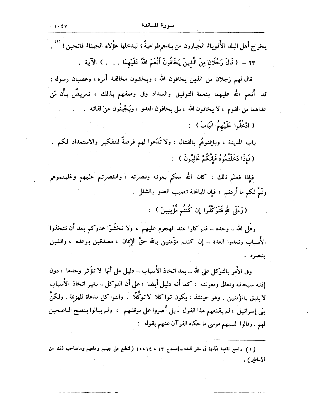 23 - {قَالَ رَجُلَانِ مِنَ الَّذِينَ يَخَافُونَ أَنْعَمَ اللَّهُ عَلَيْهِمَا ... } الآية.