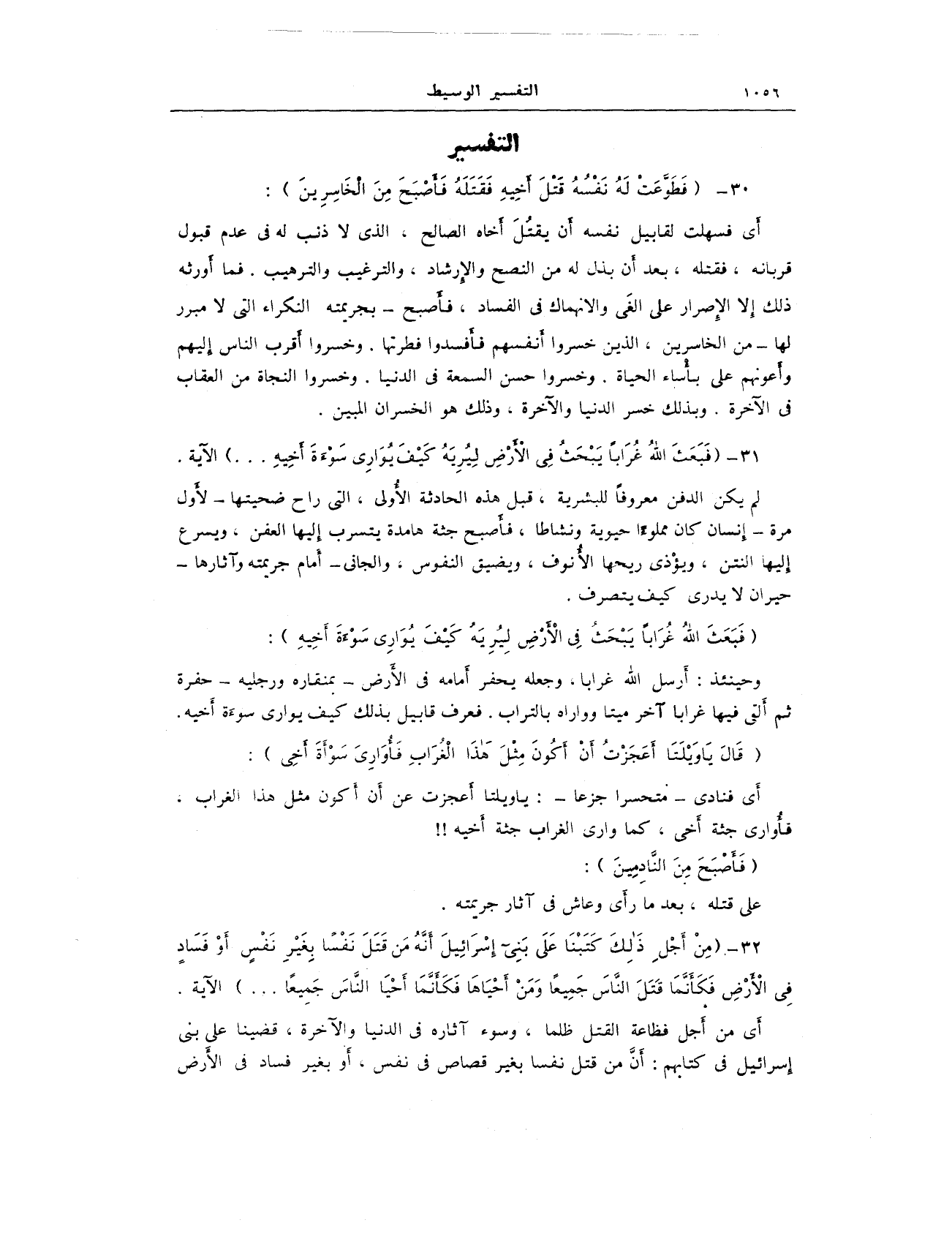 30 - {فَطَوَّعَتْ لَهُ نَفْسُهُ قَتْلَ أَخِيهِ فَقَتَلَهُ فَأَصْبَحَ مِنَ الْخَاسِرِينَ}: