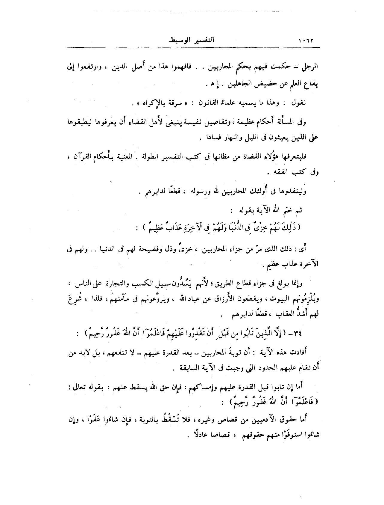 الرجل - حكمت فيهم بحكم المحاربين .. فافهموا هذا من أَصل الدين، وارتفعوا إلى يفاع العلم عن حضيض الجاهلين. إ هـ.