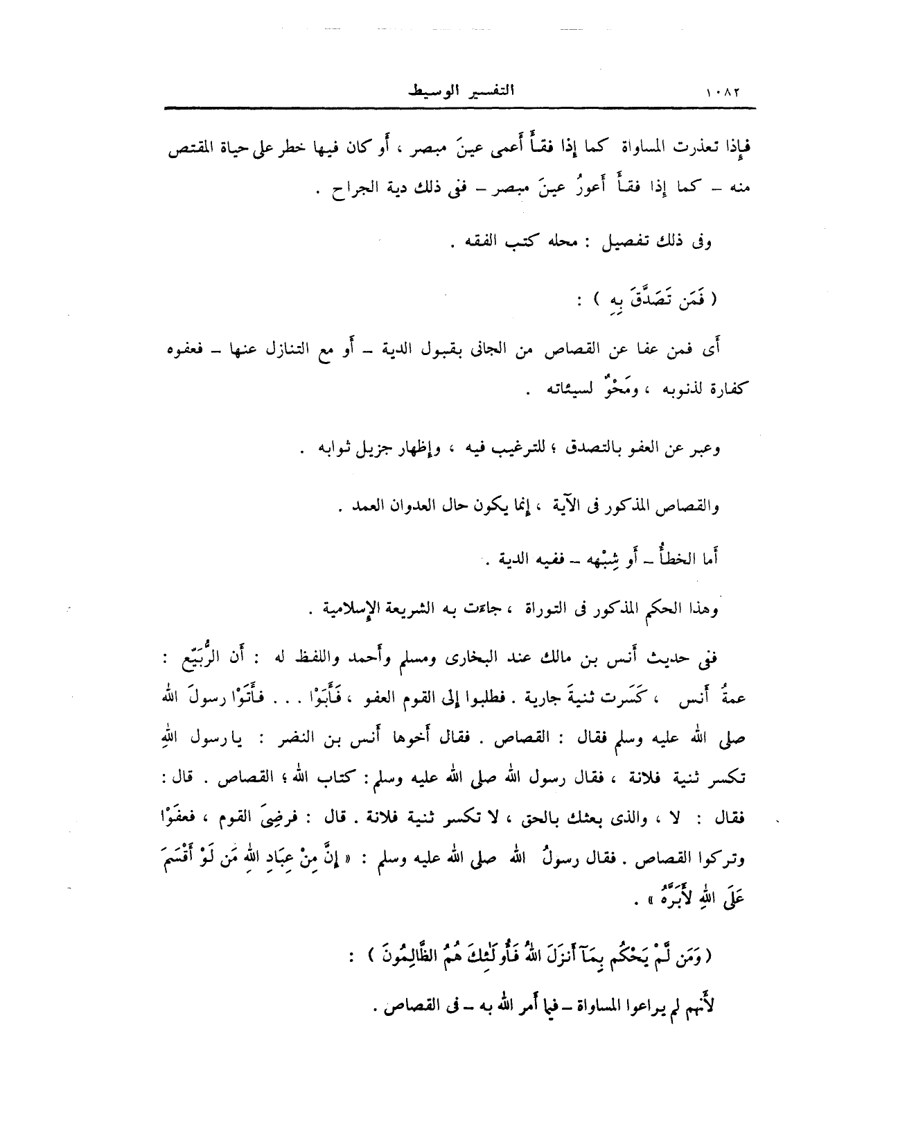 وهذا الحكم المذكور في التوراة، جاءَت به الشريعة الإِسلامية.
