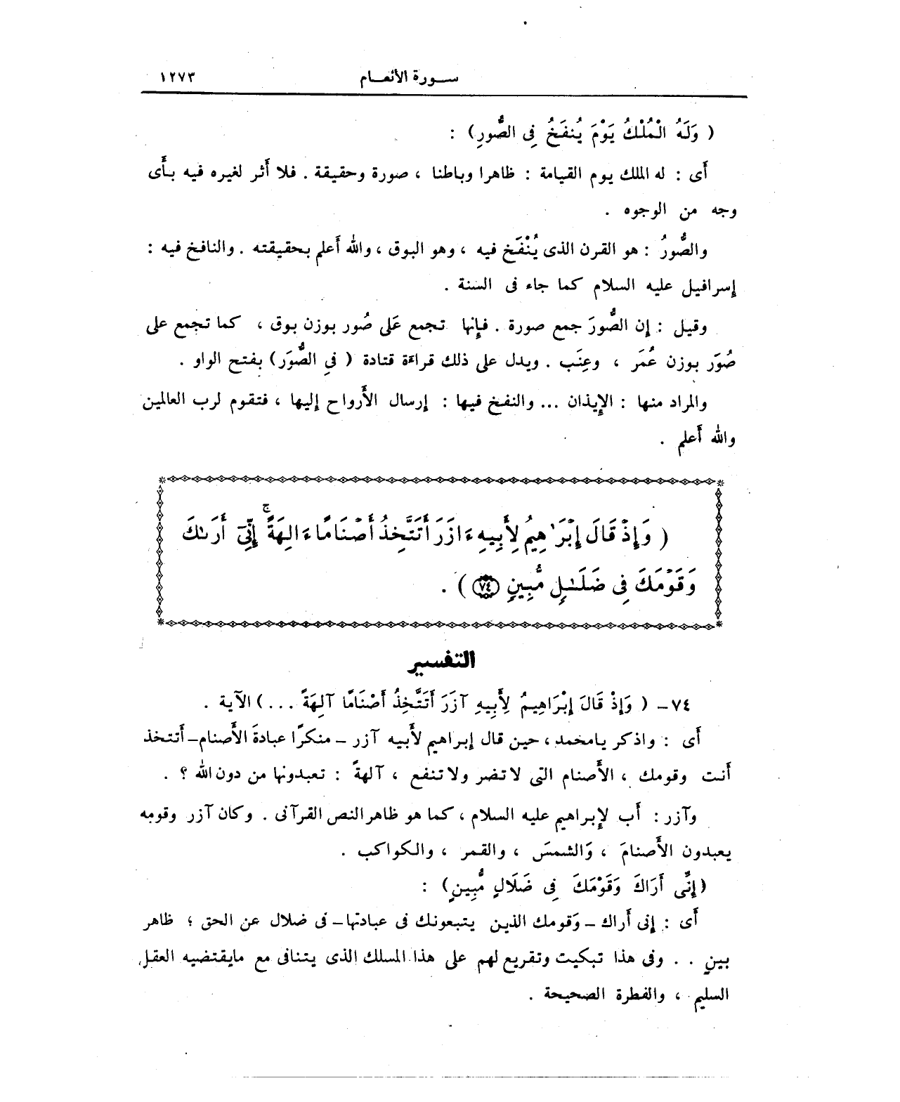 74 - {وَإِذْ قَالَ إِبْرَاهِيمُ لِأَبِيهِ آزَرَ أَتَتَّخِذُ أَصْنَامًا آلِهَةً ... } الآية.