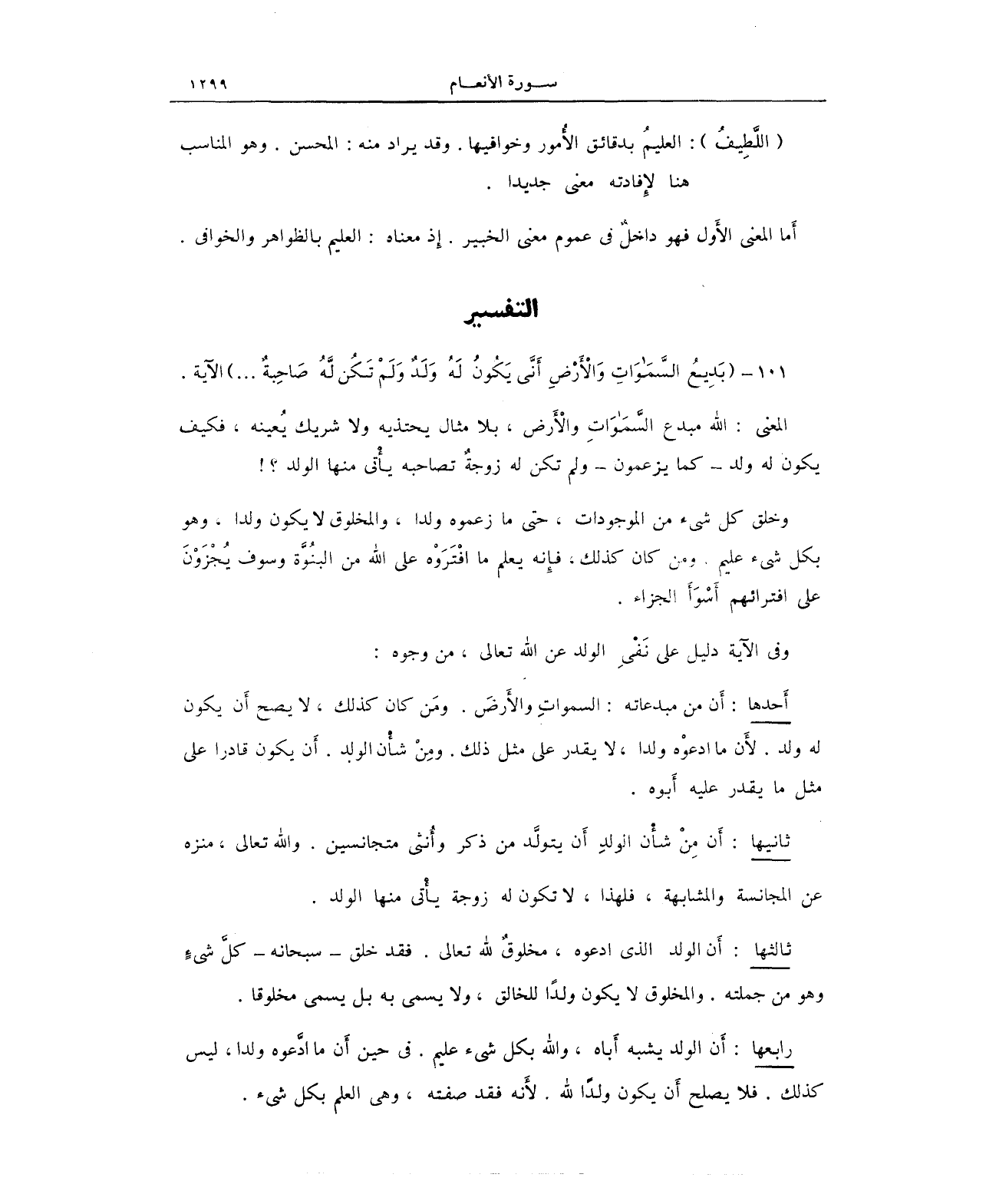 101 - {بَدِيعُ السَّمَاوَاتِ وَالْأَرْضِ أَنَّى يَكُونُ لَهُ وَلَدٌ وَلَمْ تَكُنْ لَهُ صَاحِبَةٌ ... } الآية.