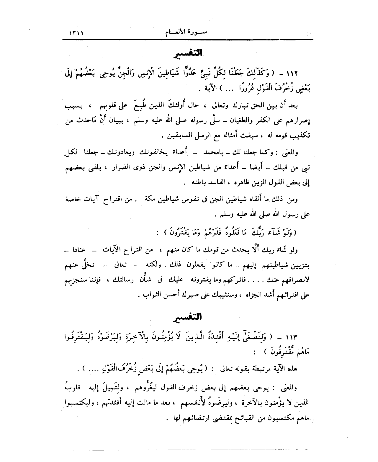 112 - {وَكَذَلِكَ جَعَلْنَا لِكُلِّ نَبِيٍّ عَدُوًّا شَيَاطِينَ الْإِنْسِ وَالْجِنِّ يُوحِي بَعْضُهُمْ إِلَى بَعْضٍ زُخْرُفَ الْقَوْلِ غُرُورًا ... } الآية.