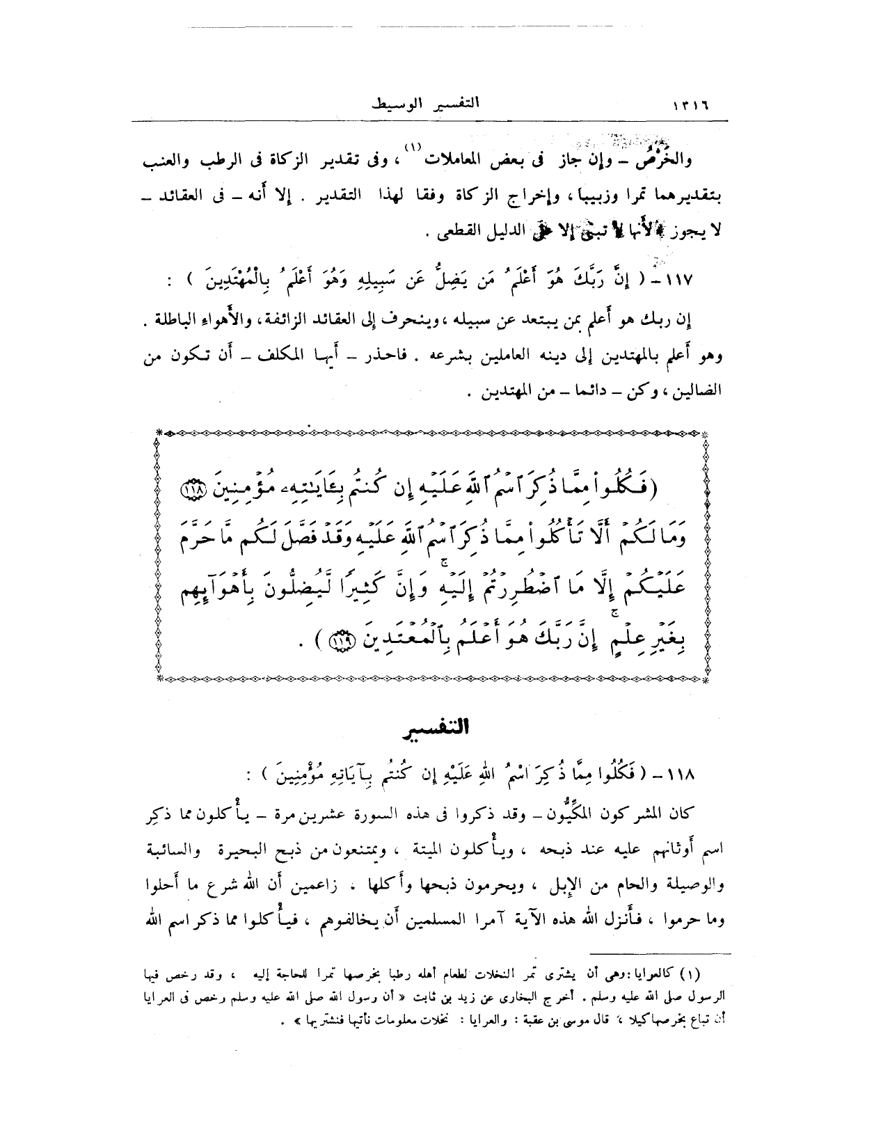 {فَكُلُوا مِمَّا ذُكِرَ اسْمُ اللَّهِ عَلَيْهِ إِنْ كُنْتُمْ بِآيَاتِهِ مُؤْمِنِينَ (118) وَمَا لَكُمْ أَلَّا تَأْكُلُوا مِمَّا ذُكِرَ اسْمُ اللَّهِ عَلَيْهِ وَقَدْ فَصَّلَ لَكُمْ مَا حَرَّمَ عَلَيْكُمْ إِلَّا مَا اضْطُرِرْتُمْ إِلَيْهِ وَإِنَّ كَثِيرًا لَيُضِلُّونَ بِأَهْوَائِهِمْ بِغَيْرِ عِلْمٍ إِنَّ رَبَّكَ هُوَ أَعْلَمُ بِالْمُعْتَدِينَ (119)}.