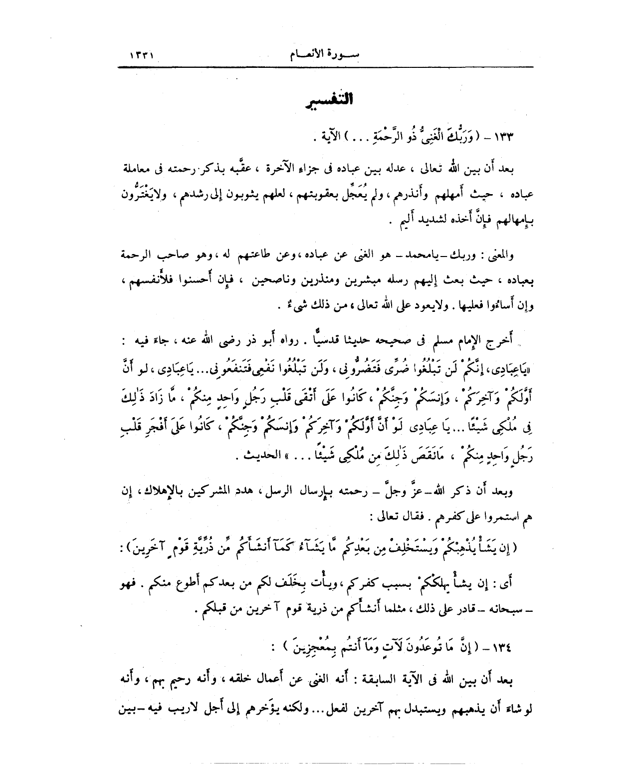 133 - {وَرَبُّكَ الْغَنِيُّ ذُو الرَّحْمَةِ ... } الآية.