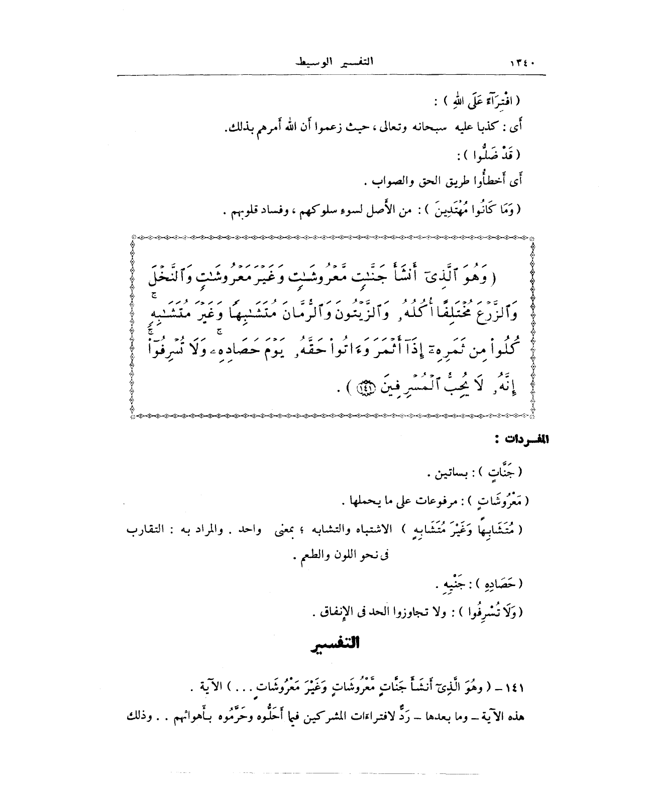 141 - {وَهُوَ الَّذِي أَنْشَأَ جَنَّاتٍ مَعْرُوشَاتٍ وَغَيْرَ مَعْرُوشَاتٍ ... } الآية.