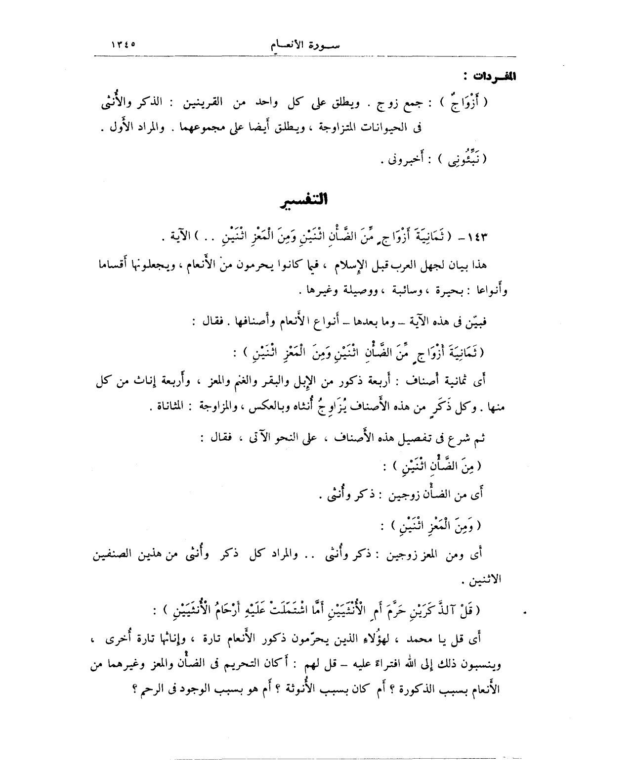 143 - {ثَمَانِيَةَ أَزْوَاجٍ مِنَ الضَّأْنِ اثْنَيْنِ وَمِنَ الْمَعْزِ اثْنَيْنِ .. } الآية.