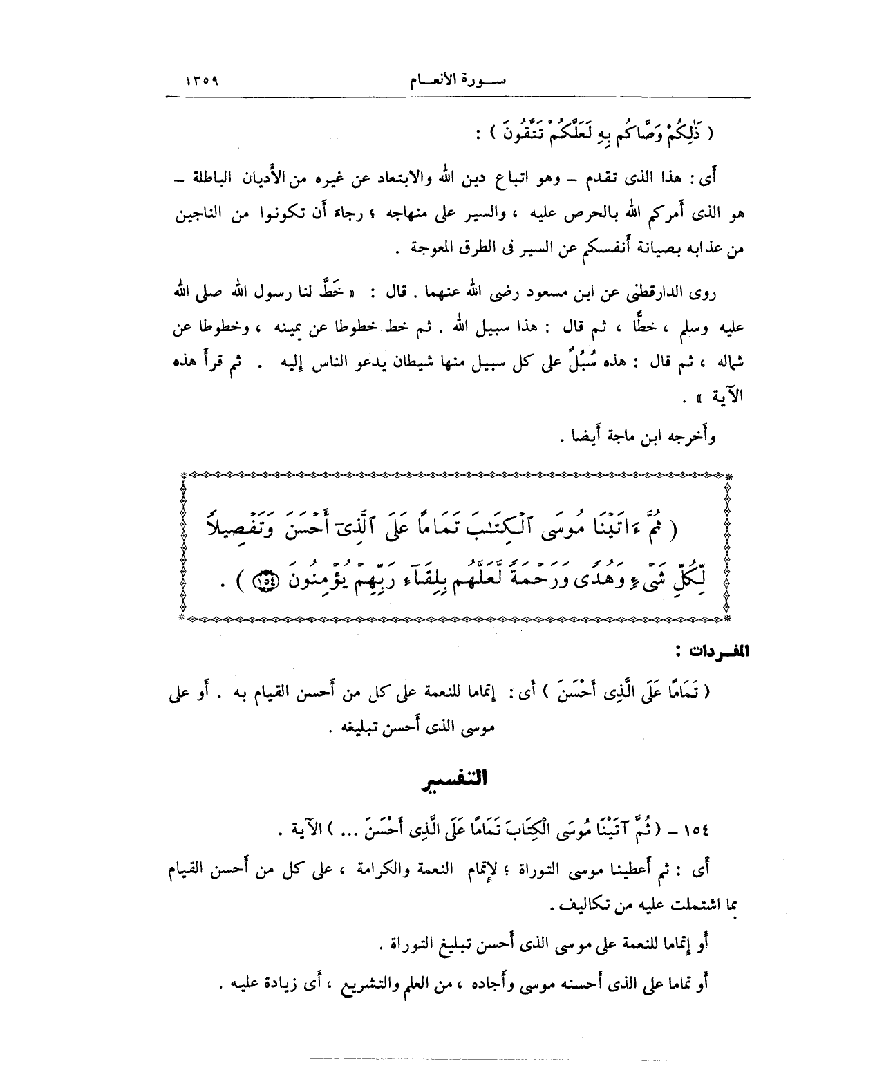 154 - {ثُمَّ آتَيْنَا مُوسَى الْكِتَابَ تَمَامًا عَلَى الَّذِي أَحْسَنَ ... } الآية.