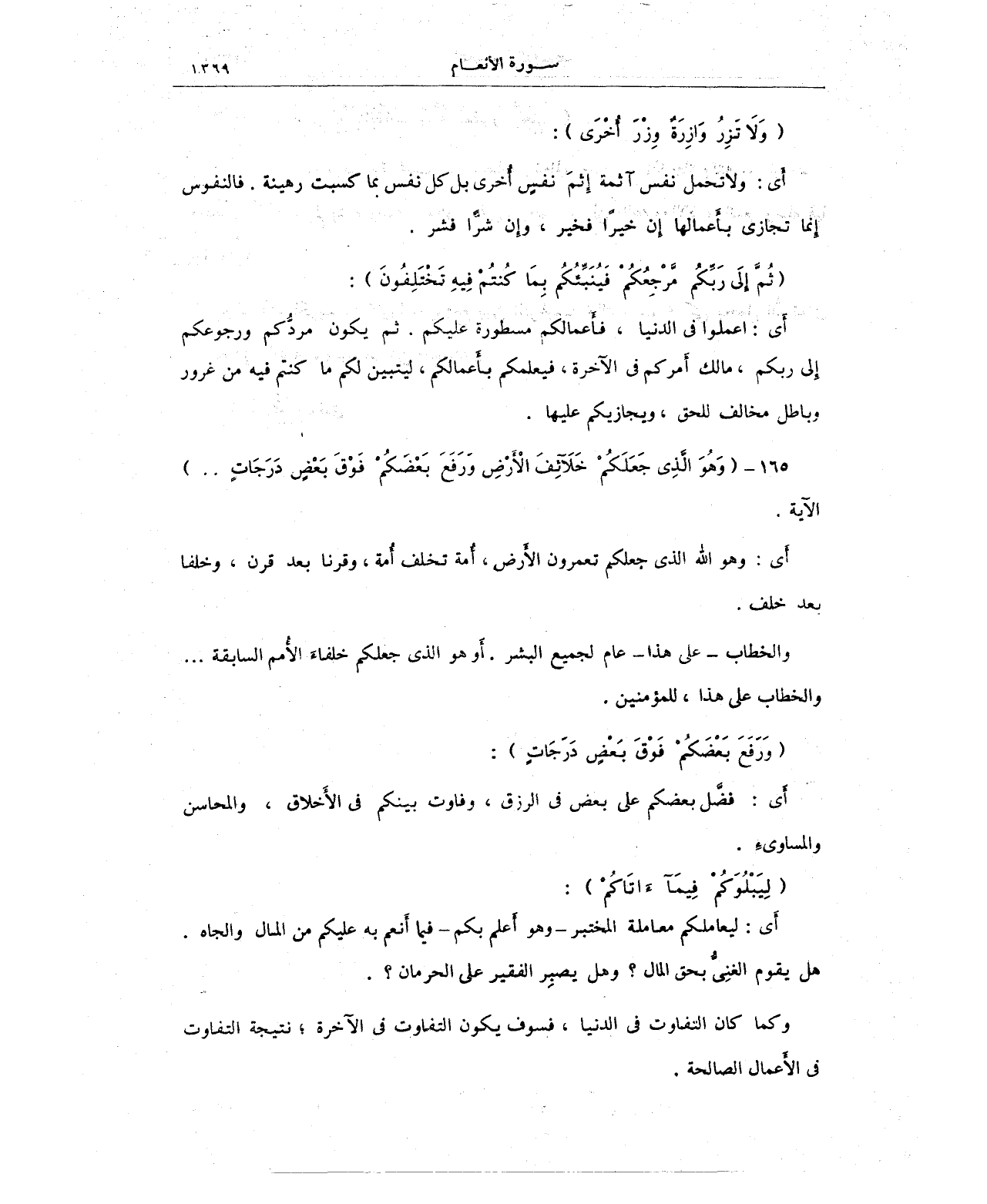 165 - {وَهُوَ الَّذِي جَعَلَكُمْ خَلَائِفَ الْأَرْضِ وَرَفَعَ بَعْضَكُمْ فَوْقَ بَعْضٍ دَرَجَاتٍ .. } الآية.