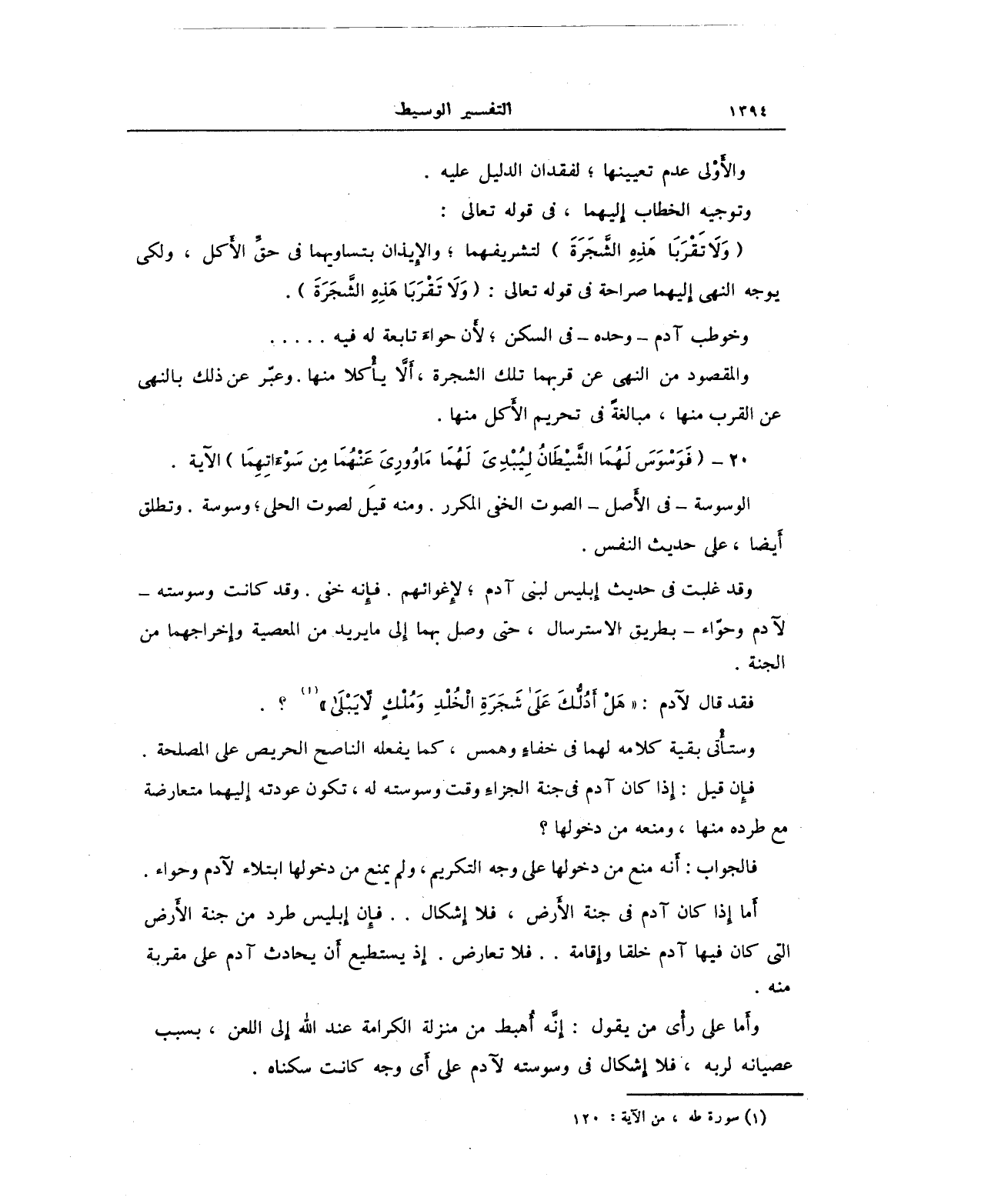 20 - {فَوَسْوَسَ لَهُمَا الشَّيْطَانُ لِيُبْدِيَ لَهُمَا مَا وُورِيَ عَنْهُمَا مِنْ سَوْآتِهِمَا} الآية.
