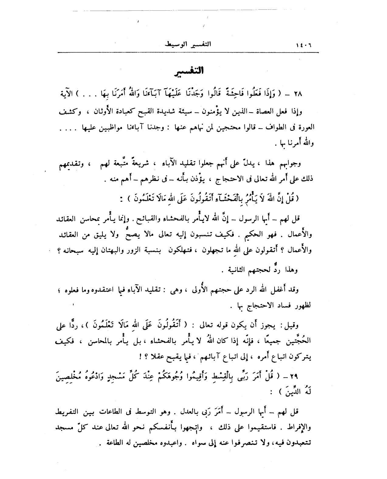 28 - {وَإِذَا فَعَلُوا فَاحِشَةً قَالُوا وَجَدْنَا عَلَيْهَا آبَاءَنَا وَاللَّهُ أَمَرَنَا بِهَا ... } الآية.