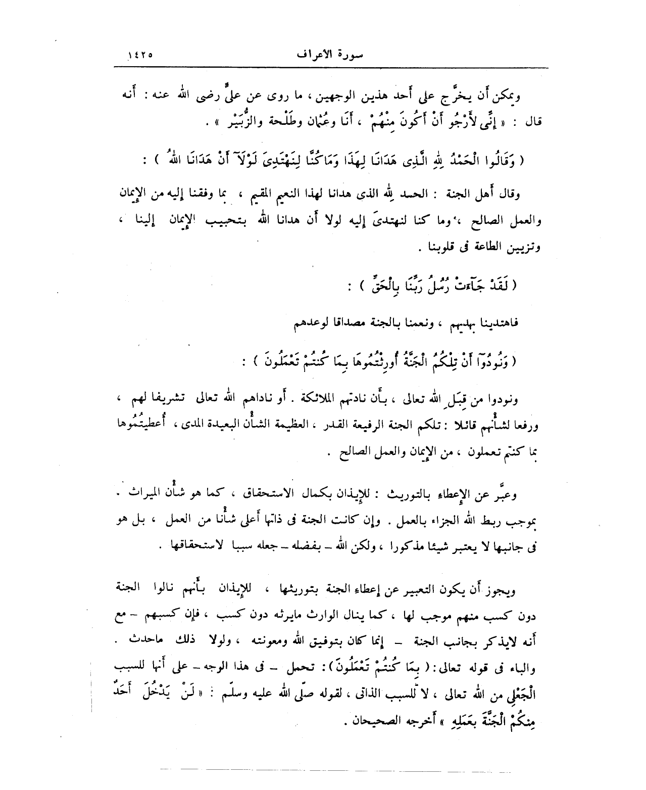 {وَقَالُوا الْحَمْدُ لِلَّهِ الَّذِي هَدَانَا لِهَذَا وَمَا كُنَّا لِنَهْتَدِيَ لَوْلَا أَنْ هَدَانَا اللَّهُ}: