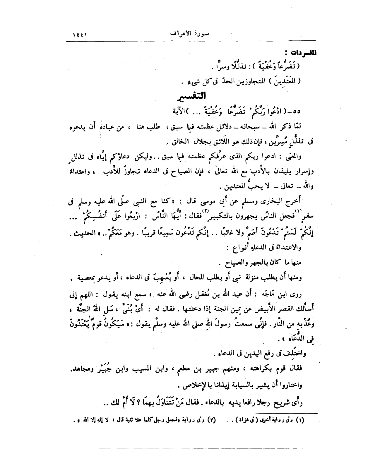55 - {ادْعُوا رَبَّكُمْ تَضَرُّعًا وَخُفْيَةً ... } الآية