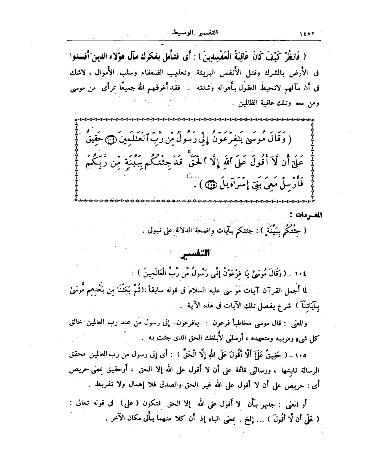 104 - {وَقَالَ مُوسَى يَا فِرْعَوْنُ إِنِّي رَسُولٌ مِنْ رَبِّ الْعَالَمِينَ}: