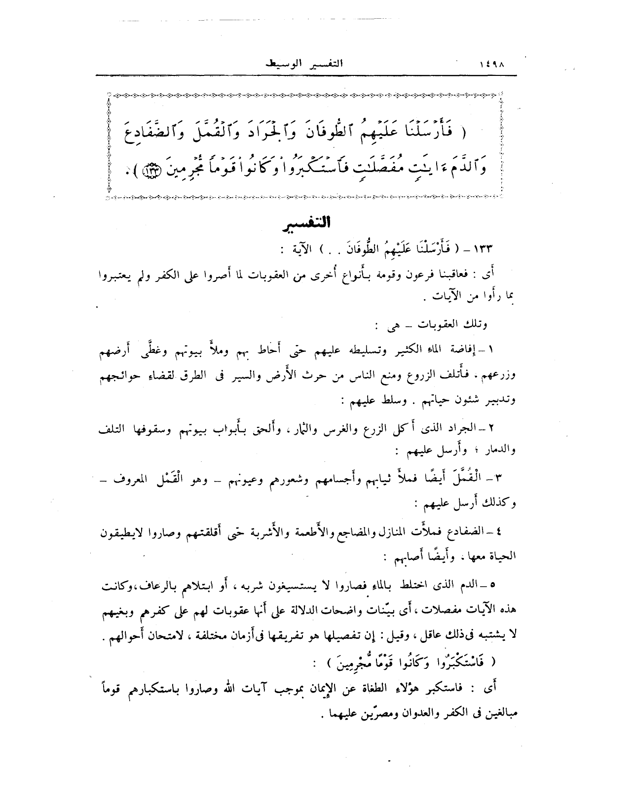 133 - {فَأَرْسَلْنَا عَلَيْهِمُ الطُّوفَانَ ... } الآية: