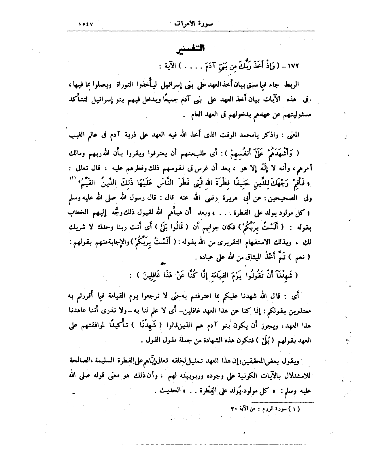 172 - {وَإِذْ أَخَذَ رَبُّكَ مِنْ بَنِي آدَمَ .... } الآية: