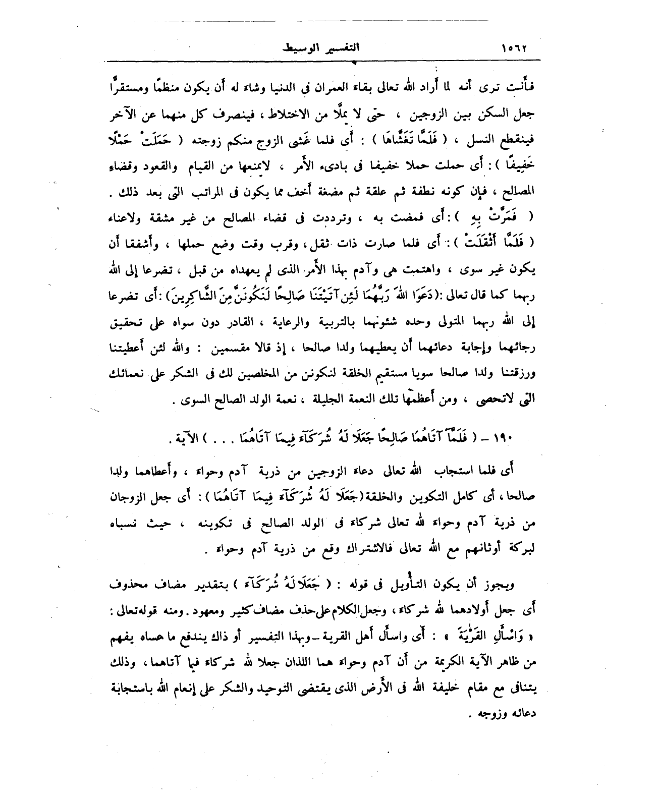 190 - {فَلَمَّا آتَاهُمَا صَالِحًا جَعَلَا لَهُ شُرَكَاءَ فِيمَا آتَاهُمَا ... } الآية.