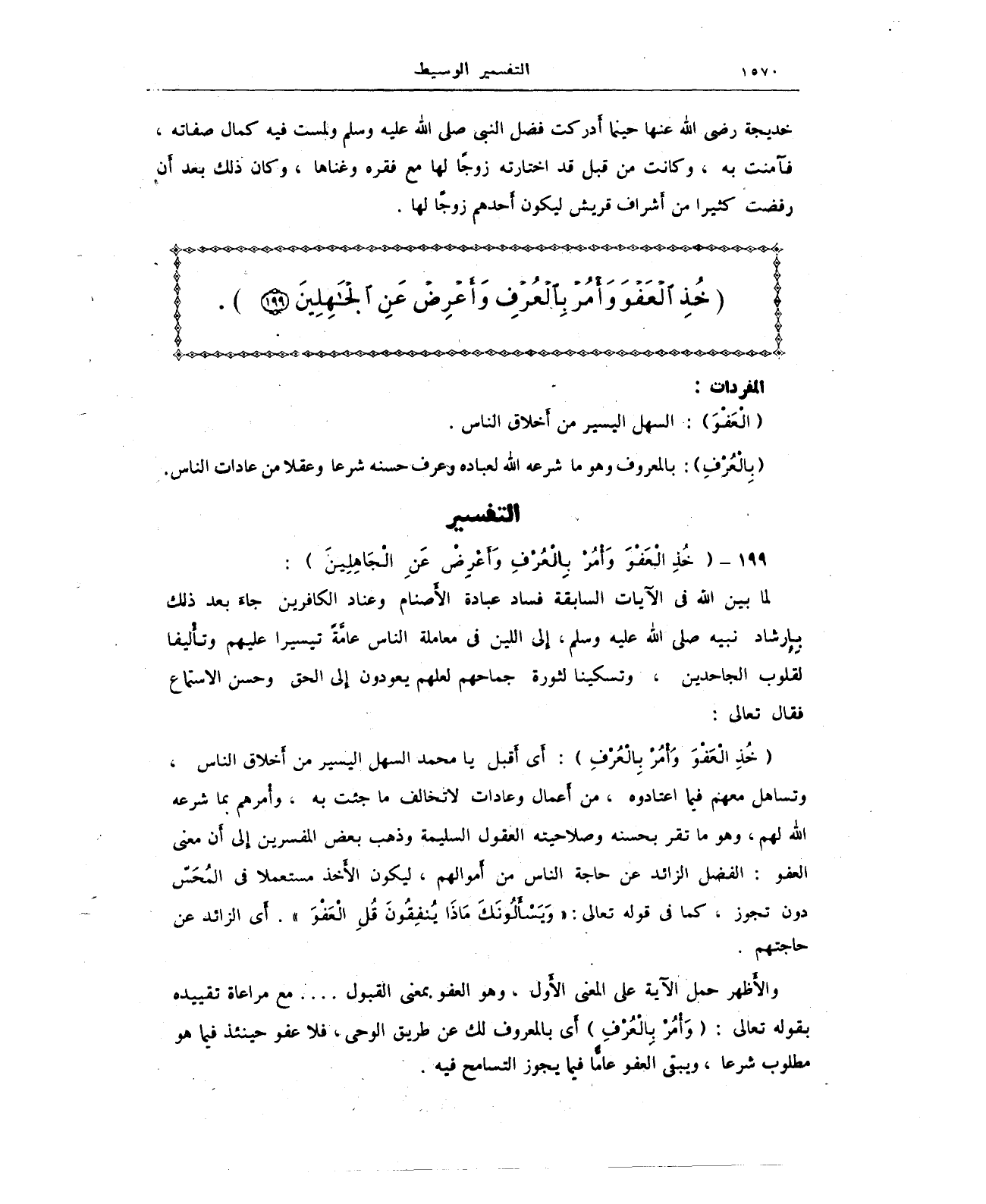 199 - {خُذِ الْعَفْوَ وَأْمُرْ بِالْعُرْفِ وَأَعْرِضْ عَنِ الْجَاهِلِينَ}: