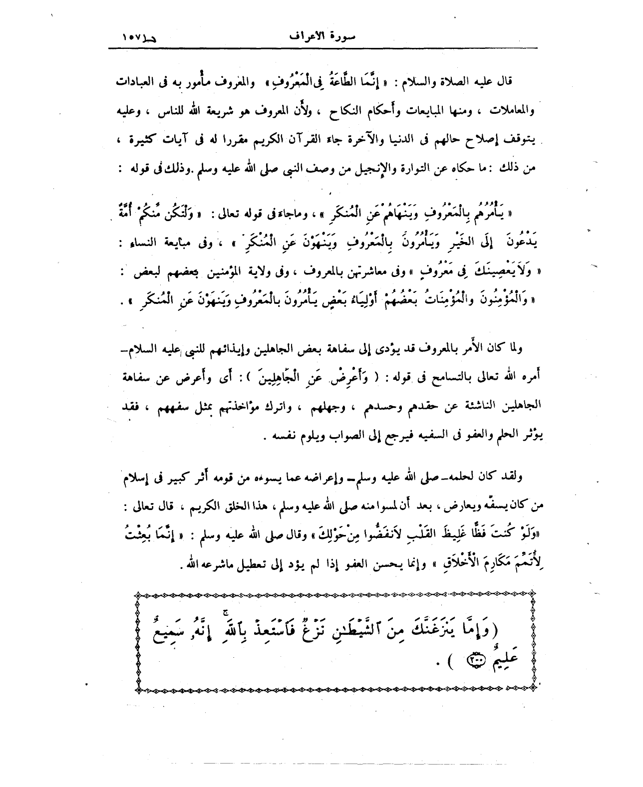 قال عليه الصلاة والسلام: "إِنَّمَا الطَّاعَةُ في الْمَعْرُوفِ" والمعروف مأْمور به في العبادات والمعاملات، ومنها المبايعات وأَحكام النكاح، ولأَن المعروف هو شريعة الله للناس، وعليه يتوقف إِصلاح حالهم في الدنيا والآخرة جاءَ القرآن الكريم مقررا له في آيات كثيرة، من ذلك: ما حكاه عن التوراة والإِنجيل من وصف النبي - صلى الله عليه وسلم -. وذلك في قوله: