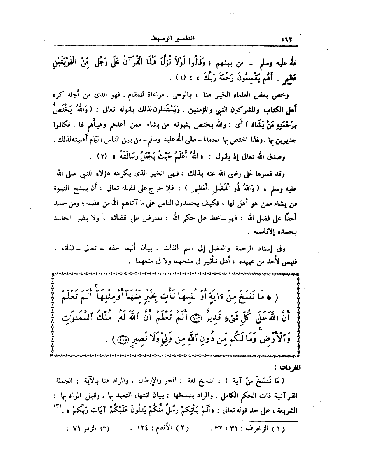 {مَا نَنْسَخْ مِنْ آيَةٍ أَوْ نُنْسِهَا نَأْتِ بِخَيْرٍ مِنْهَا أَوْ مِثْلِهَا أَلَمْ تَعْلَمْ أَنَّ اللَّهَ عَلَى كُلِّ شَيْءٍ قَدِيرٌ (106) أَلَمْ تَعْلَمْ أَنَّ اللَّهَ لَهُ مُلْكُ السَّمَاوَاتِ وَالْأَرْضِ وَمَا لَكُمْ مِنْ دُونِ اللَّهِ مِنْ وَلِيٍّ وَلَا نَصِيرٍ (107)}