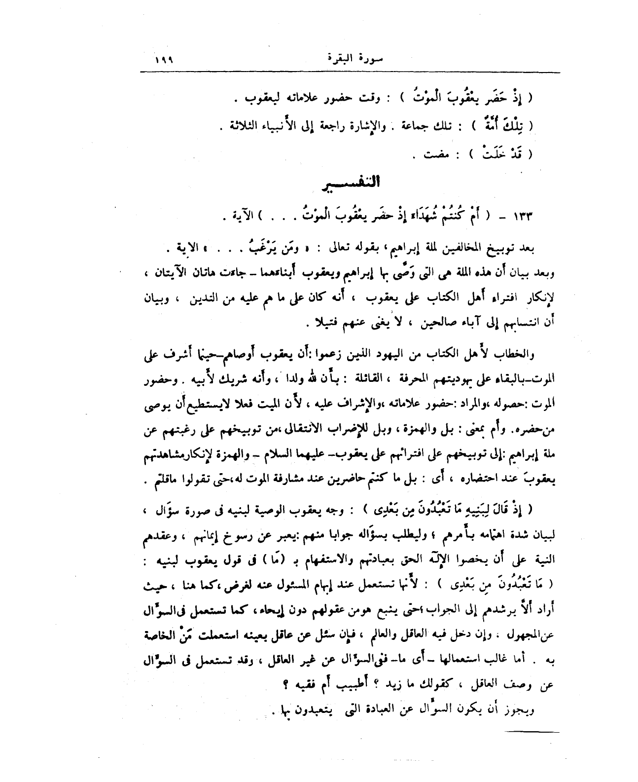 133 - {أَمْ كُنْتُمْ شُهَدَاءَ إِذْ حَضَرَ يَعْقُوبَ الْمَوْتُ ... } الآية.