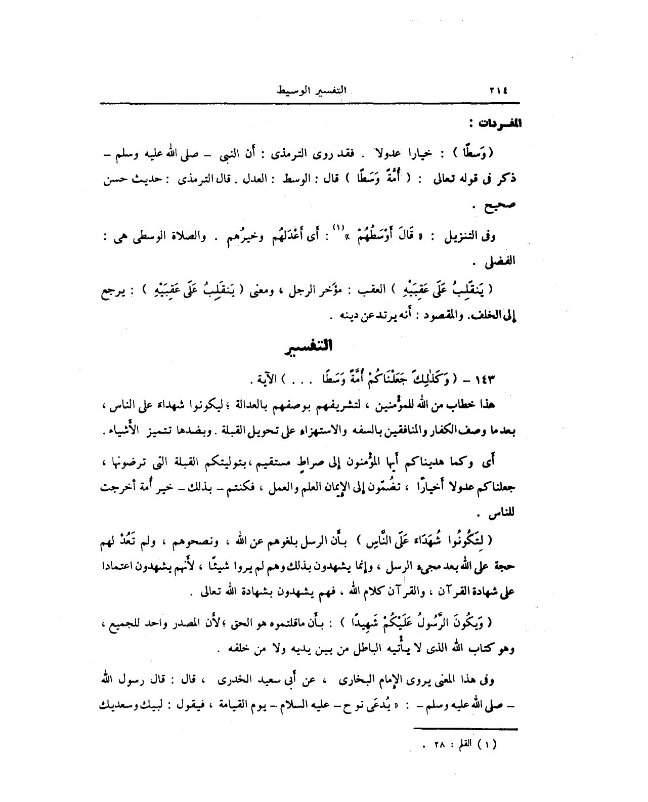 143 - {وَكَذَلِكَ جَعَلْنَاكُمْ أُمَّةً وَسَطًا ... } الآية.
