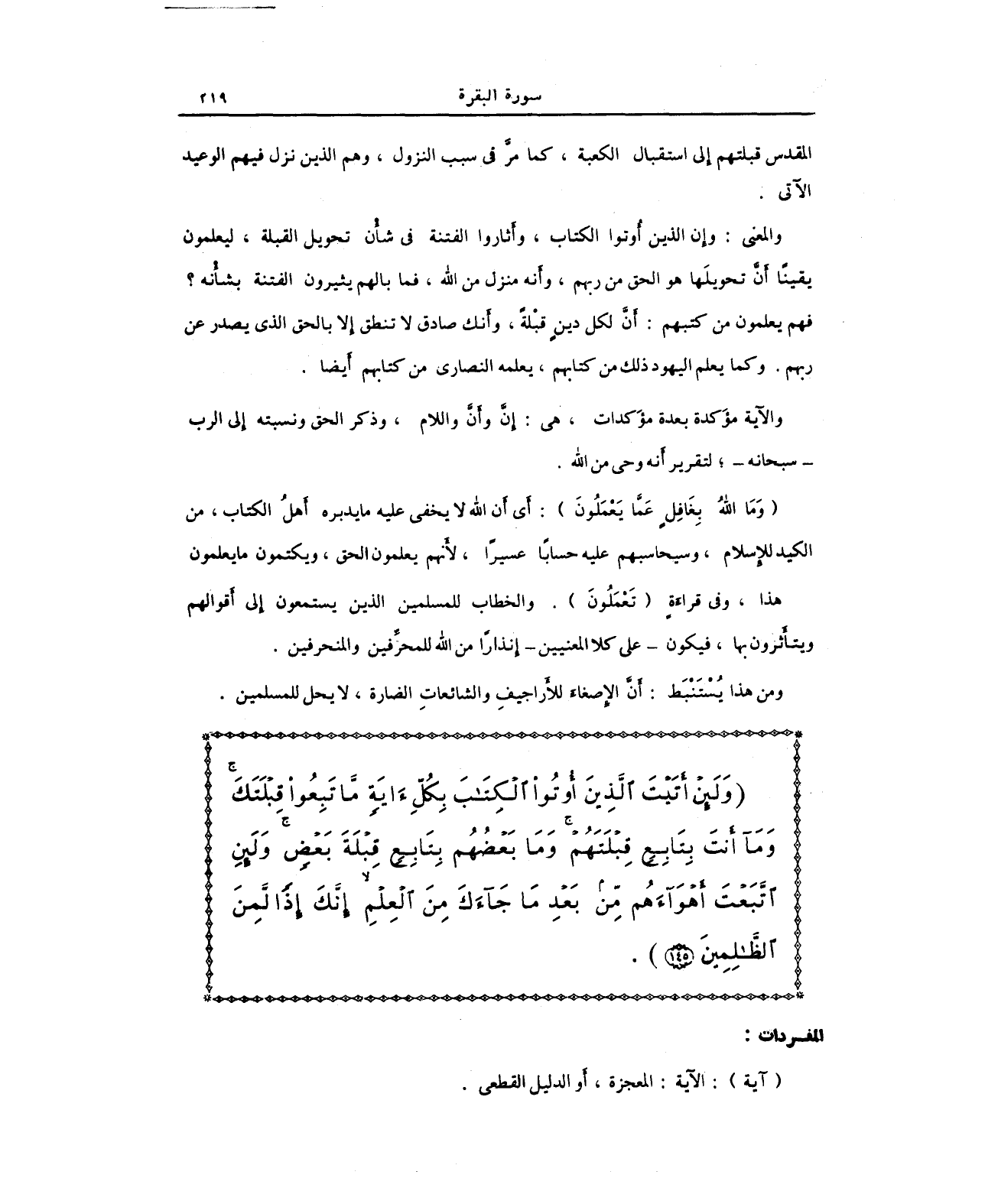 {وَلَئِنْ أَتَيْتَ الَّذِينَ أُوتُوا الْكِتَابَ بِكُلِّ آيَةٍ مَا تَبِعُوا قِبْلَتَكَ وَمَا أَنْتَ بِتَابِعٍ قِبْلَتَهُمْ وَمَا بَعْضُهُمْ بِتَابِعٍ قِبْلَةَ بَعْضٍ وَلَئِنِ اتَّبَعْتَ أَهْوَاءَهُمْ مِنْ بَعْدِ مَا جَاءَكَ مِنَ الْعِلْمِ إِنَّكَ إِذًا لَمِنَ الظَّالِمِينَ (145)}