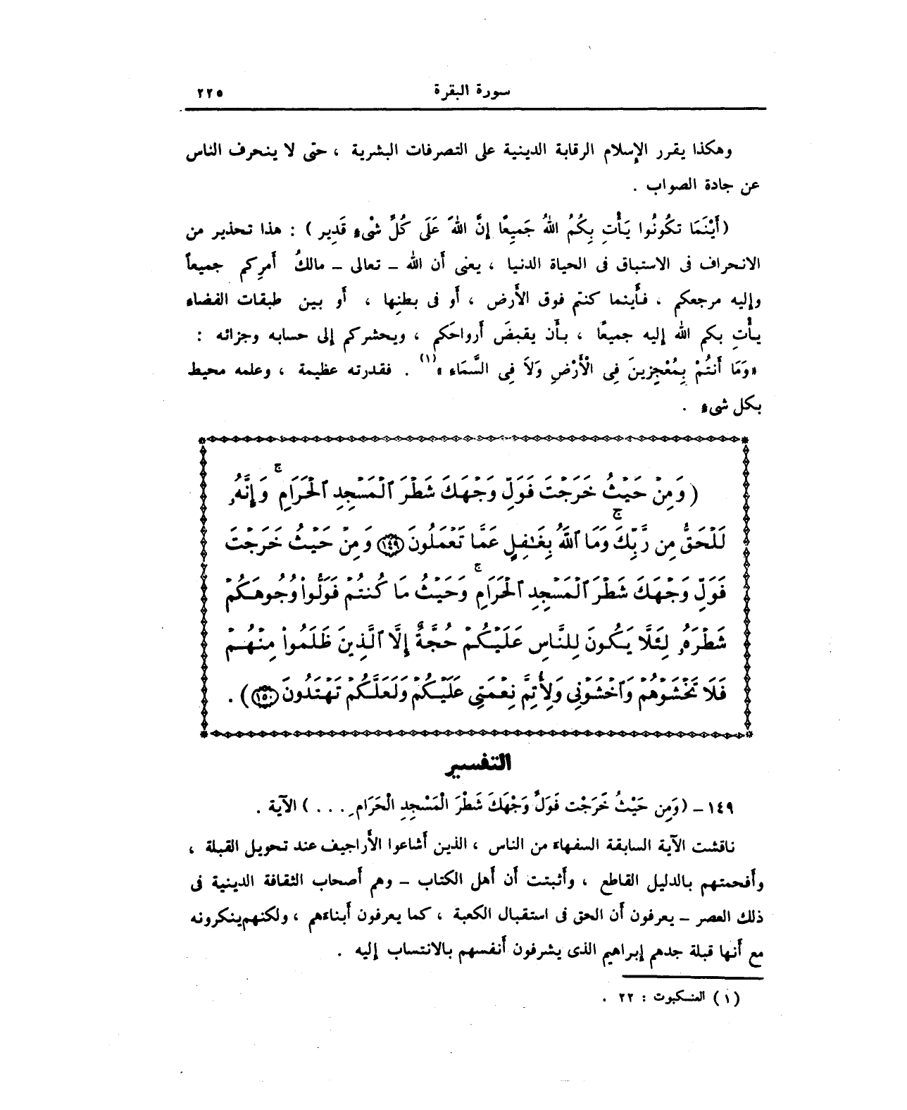 149 - {وَمِنْ حَيْثُ خَرَجْتَ فَوَلِّ وَجْهَكَ شَطْرَ الْمَسْجِدِ الْحَرَامِ ... } الآية.