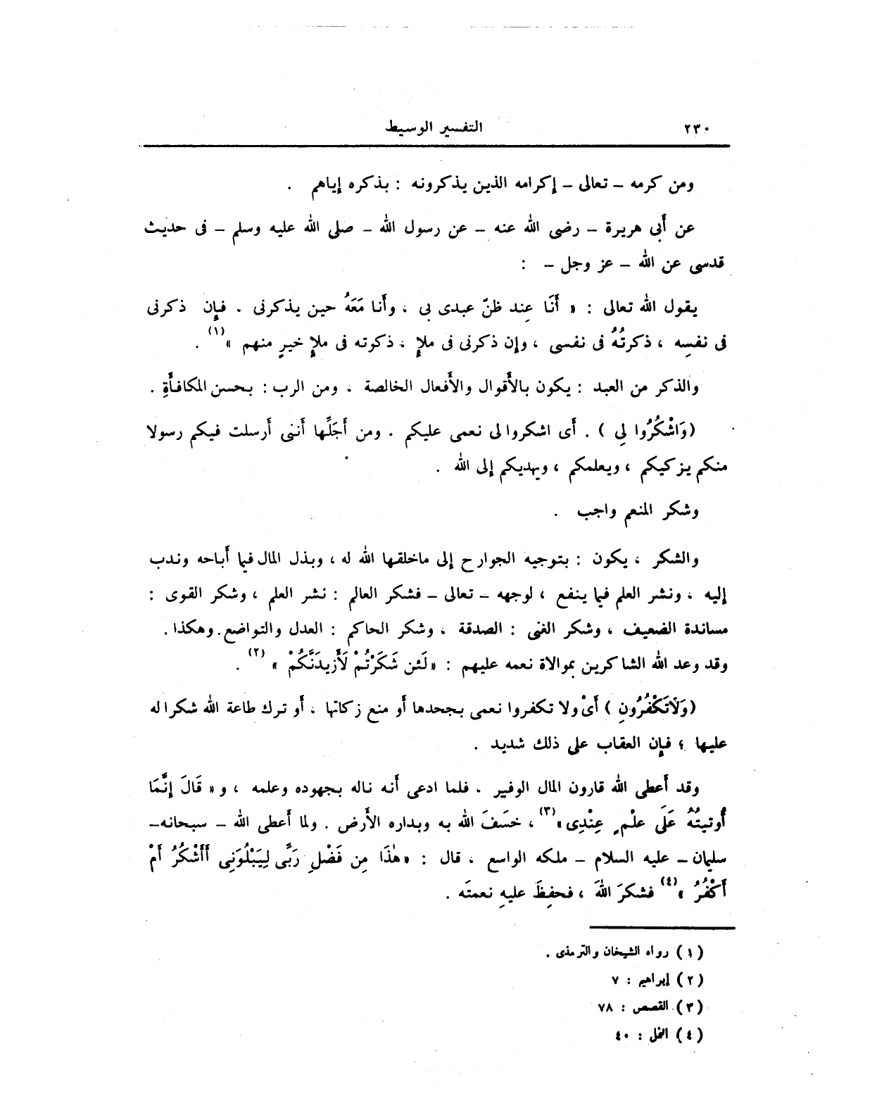 والشكر يكون: بتوجيه الجوارح إلى ما خلقها الله له، وبذلك المال فيما أباحه وندب إليه، ونشر العلم فيما ينفع، لوجه الله - تعالى - فشكر العالم: نشر العلم، وشكر القوي: مساندة الضعيف، وشكر الغني: الصدقة، وشكر الحاكم: العدل والتواضع. وهكذا.