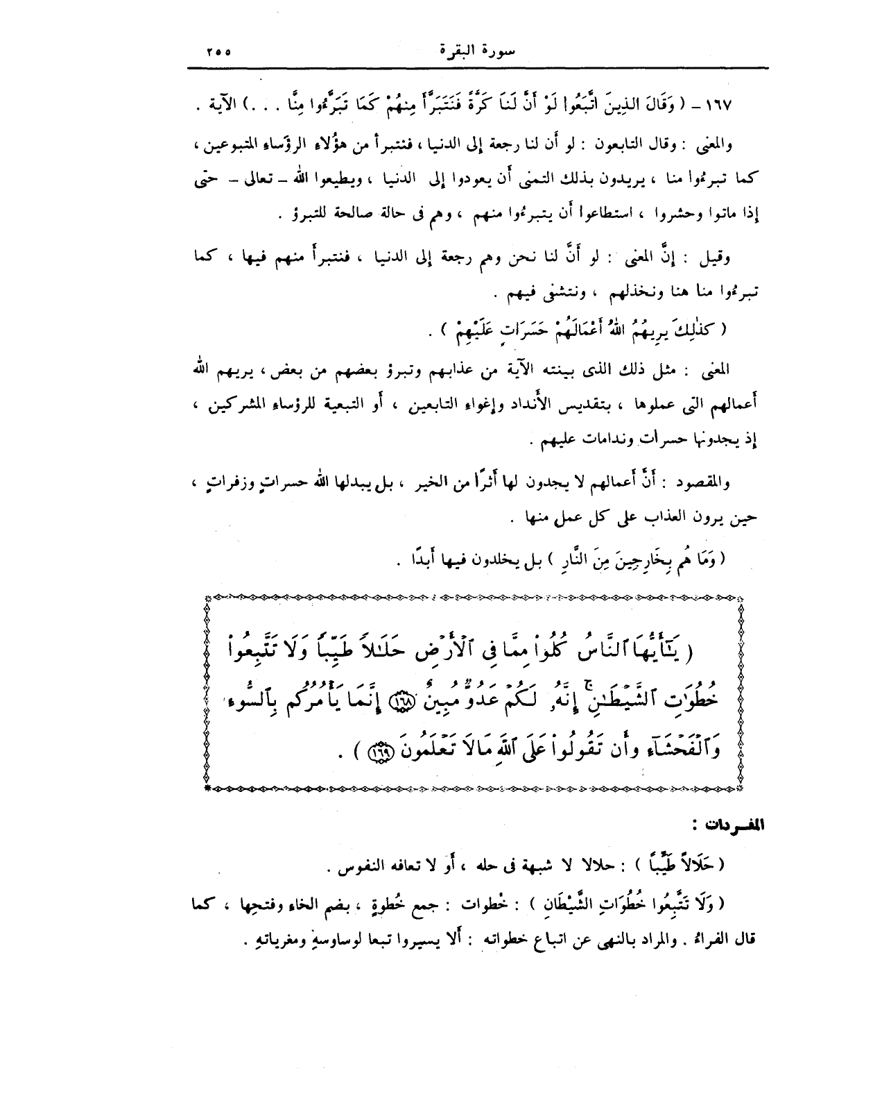 167 - {وَقَالَ الَّذِينَ اتَّبَعُوا لَوْ أَنَّ لَنَا كَرَّةً فَنَتَبَرَّأَ مِنْهُمْ كَمَا تَبَرَّءُوا مِنَّا ... } الآية.