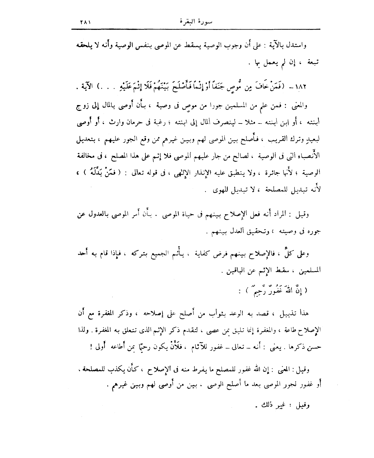 182 - {فَمَنْ خَافَ مِن مُّوصٍ جَنَفًا أَوْ إِثْمًا فَأَصْلَحَ بَيْنَهُمْ فَلَا إِثْمَ عَلَيْهِ ... } الآية.