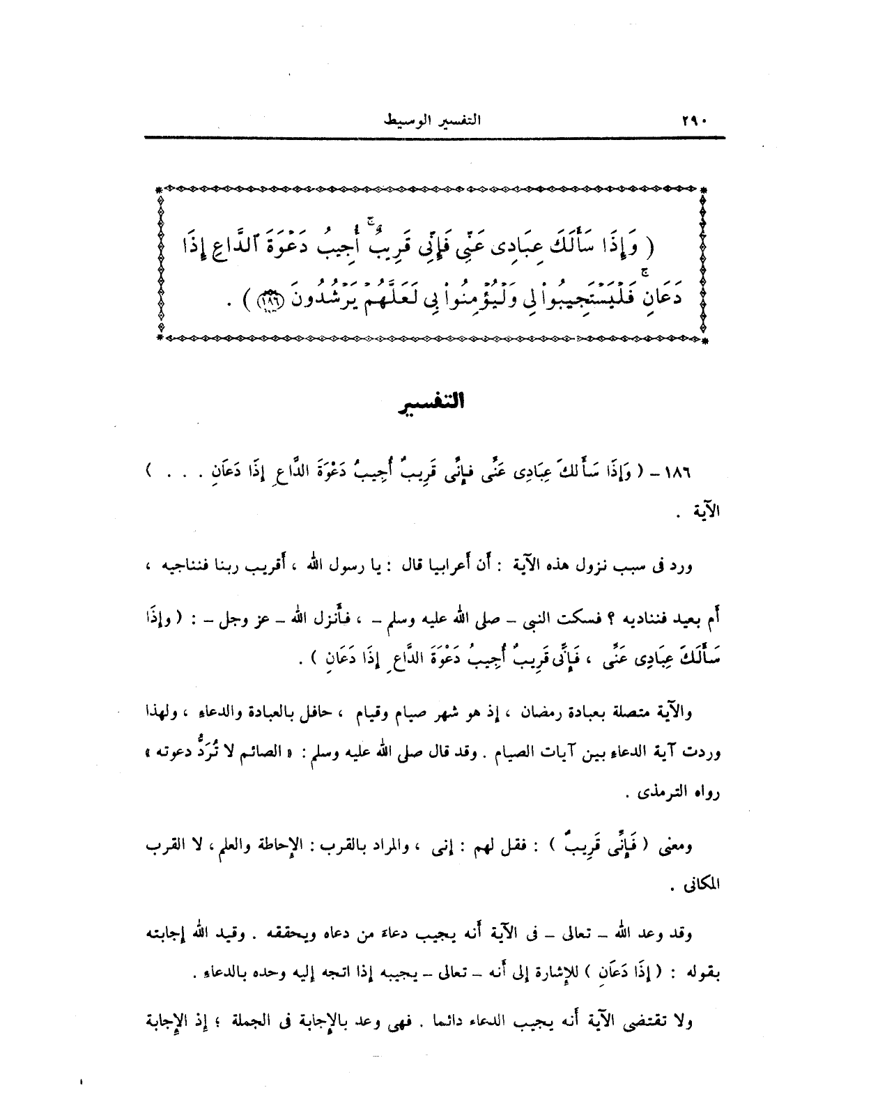 186 - {وَإِذَا سَأَلَكَ عِبَادِي عَنِّي فَإِنِّي قَرِيبٌ أُجِيبُ دَعْوَةَ الدَّاعِ إِذَا دَعَانِ ... } الآية.